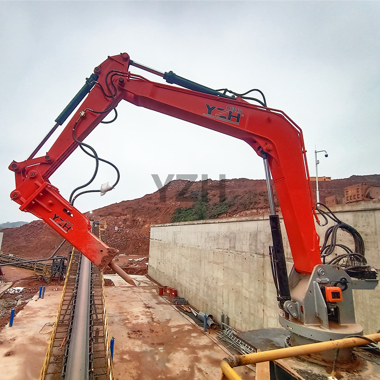 Lighter types of China Rock Breaker Systems with smaller hydraulic hammers capable of breaking extremely hard and abrasive large stones are used for primary jaw or impact crushers. China Rock Breaker Systems are used for breaking excessively large stones in crushers or for unblocking roads to crushers. China Rock Breaker Systems are mounted on crushing line steel structures or on separate supporting columns, or sometimes on concrete foundations.